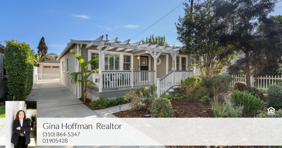 208 West Walnut Avenue in El Segundo welcomes you with its whimsical front yard landscaping, shingled grayish-green Cape Cod exterior, accented by crisp white windows and a classic white arbor. Stepping inside, you’re greeted by original hardwood floors in the living room, where an arched entryway flows seamlessly into the dining room. Both spaces are adorned with plantation shutters, creating a timeless and inviting atmosphere. The entire home has been freshly painted, including the kitchen cabinets, giving it a bright and polished look. In the kitchen, you’ll find an efficient layout with ample storage, a built-in KitchenAid refrigerator, and a cheerful window above the sink that fills the space with natural light. Three well-appointed bedrooms complement a bathroom that features a seamless barn-style shower door, built in bench, chrome fixtures and nostalgic penny tiles. The 1,080-square-foot main house is connected by a lush green space to the 780-square-foot “playroom,” permitted in 1957, complete with vaulted ceilings, a bar area, half bath, and sliding doors leading to a spacious private patio. A white picket gate encloses the driveway, while the two-car garage provides laundry hookups and abundant storage. Some noted features for the main house are central heating and cooling, two sets of dual-paned windows throughout, and a tankless water heater, offering modern comfort alongside timeless charm.